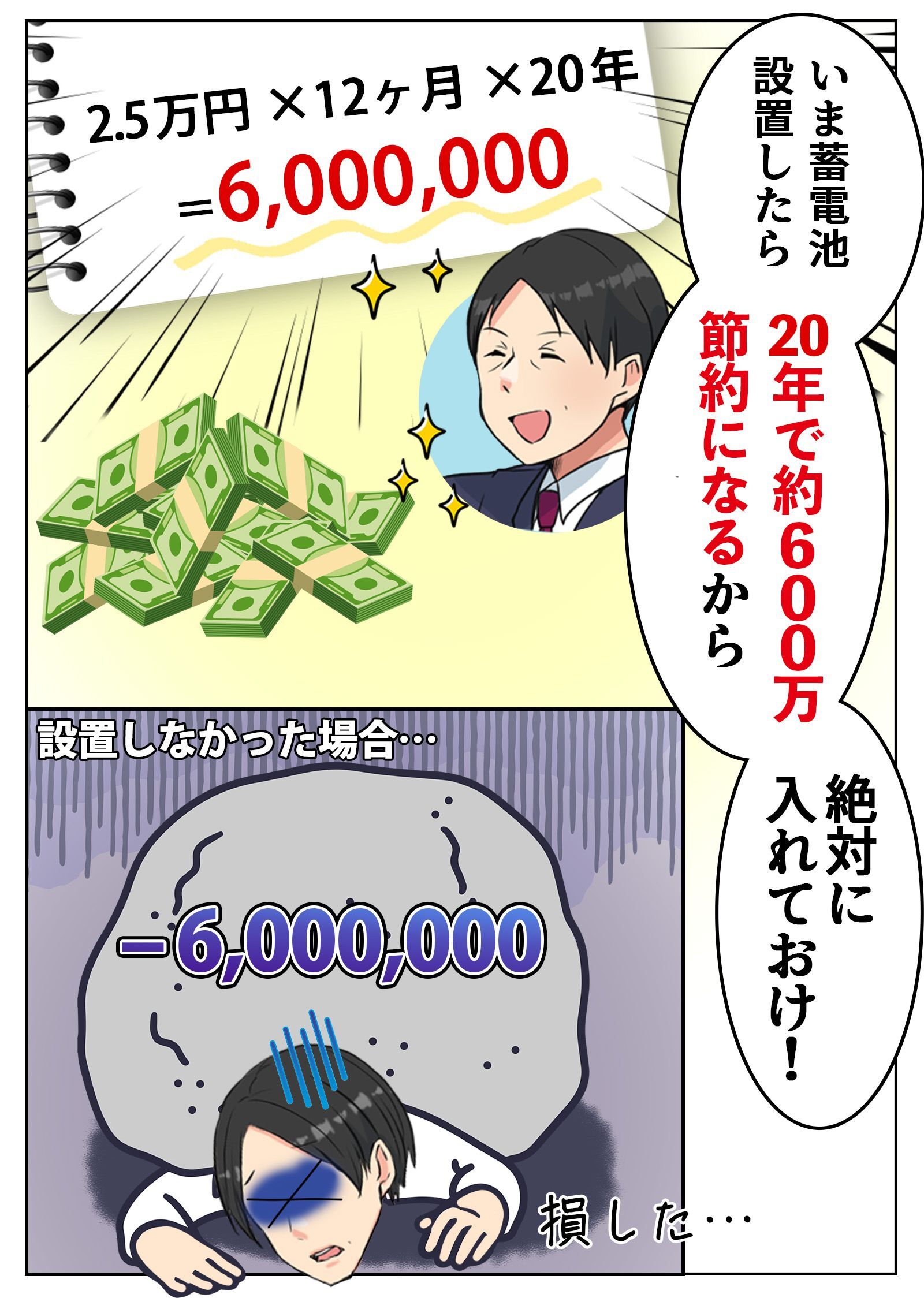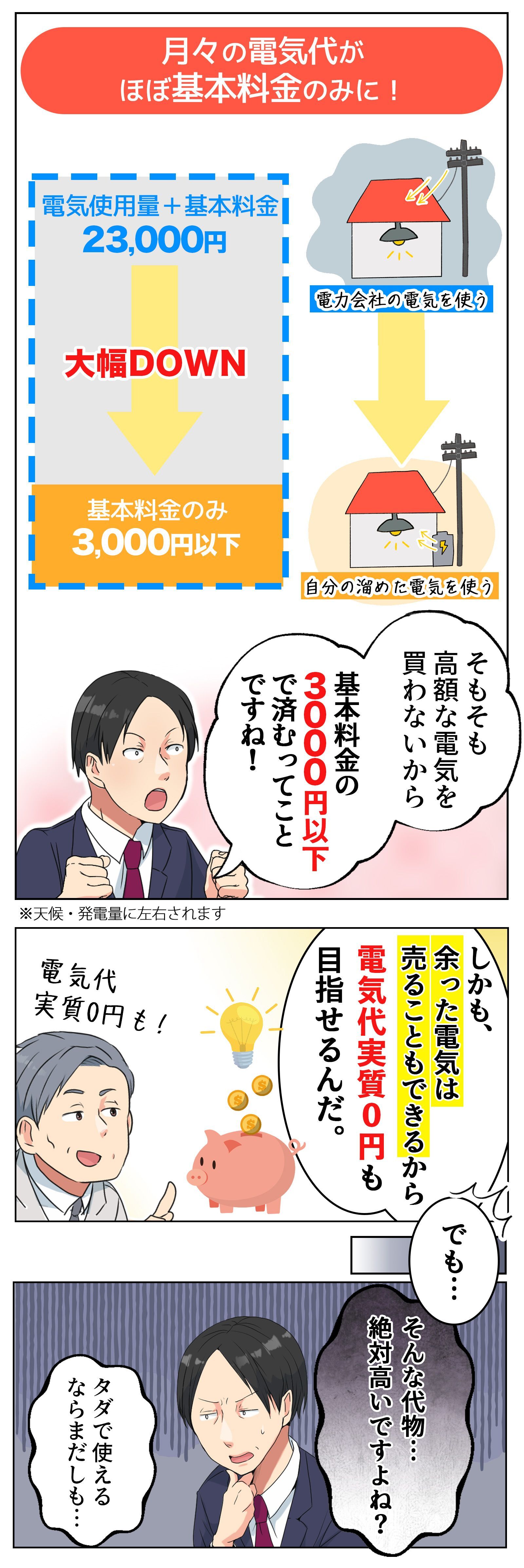 ※蓄電池太陽光導入月2万円節約30年使用機器代240万想定