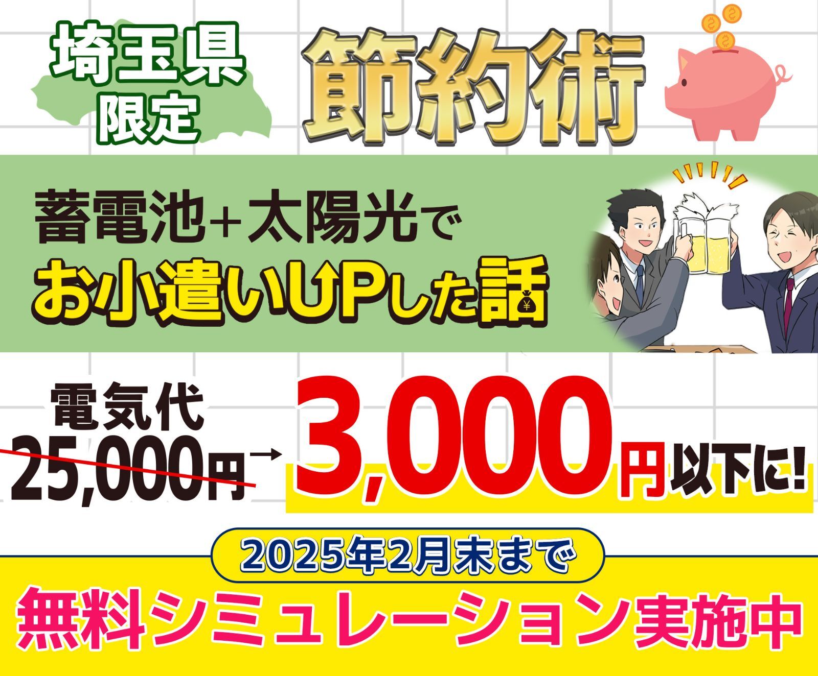 ※シミュレーションとなり保証するものではありません※蓄電池太陽光導入月2万円節約30年使用機器代240万想定